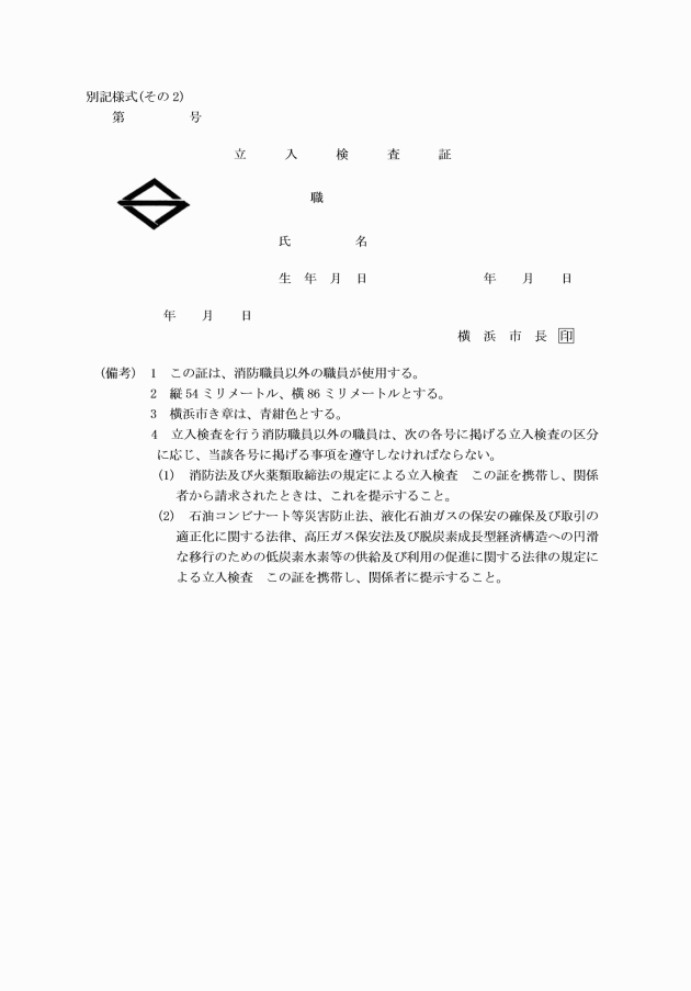 横浜市消防等立入検査証規則